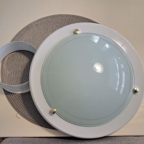 Kattolamppu. Paketti avattu, mutta ei sitten lopulta päässytkään meillä käyttöön eli käyttämätön. Ei sisällä lamppuja.