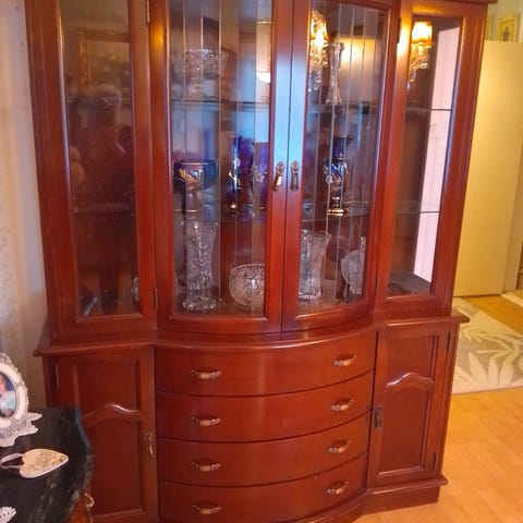 Lasi kaapin korkeus 128cm , lasi hyllyt ja valaistus yläosassa.