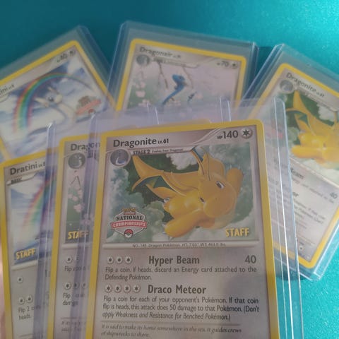 Myydään kuvissa näkyvät Legendary Collection setin reverse holo Dratini, Dragonair ja Dragonite kortit vuodelta 2002.