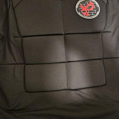 Jadberg suojaliivi musta väri, pehmustettu materiaali. Rintapanssari on suunniteltu suojaamaan vartaloa ja siinä on säädettävä vyötäröhihnat. Selän puolella hihnojen ommel hieman ratkennut, ei vaikuta käyttöön.