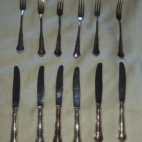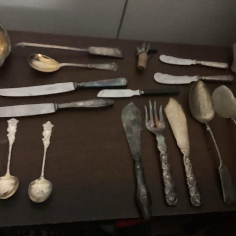 Aterimet alpakkaa/ uutta hopeaa noin 50 kpl halvalla kaikki.