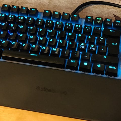 Hyvä, mutta vanha näppäimistö kaapin pohjalta. Testasin kaikki napit ja toimivat. Punaiset lineaariset kytkimet ja mekaaninen näppäimistö.