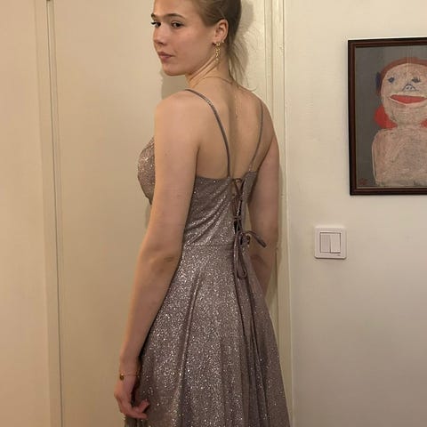 Näyttävä kimaltava juhlamekko.