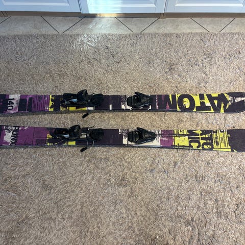 Head twin tip 134cm.Hyvä kuntoiset sukset vähän maalia lähtenyt reunoista ja kierteet on hyvät.Pohjassa on pieni lommo ytimeen asti ja kaksi pientä lommoa.kaksi etu sidettä ja yksi taka side tulee kaupan päälle.