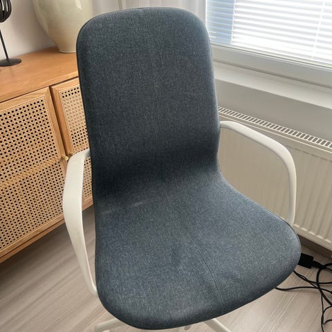 Ikean supermukava Långfjäll toimistotuoli. Tumman harmaa tekstiilipinta, jalka valkoinen. (Kuvassa 3, kaksi muuta myyty)