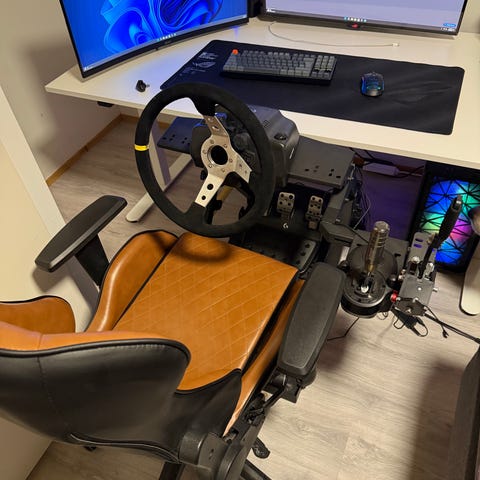 Myydään todella vähällä käytöllä ollut sim racing setti. Logitechin g pro ratti (11Nm) ja polkimet sekä playseat trophy ajotuoli. Uudenveroisessa kunnossa löytyy kuitit ja alkuperäiset pakkaukset. Takuuta jäljellä reilusti. Itsellä aika/kiinnostus ei riitä enää ajeluihin. Uutena 2k setti. Löytyy myös kytkin poljin ei vaan ole kuvissa asennettuna.