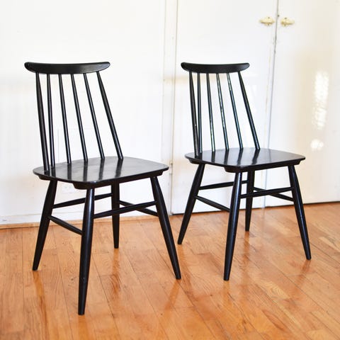 mustat pinnatuolit ruskealla istuimella 2 kpl
