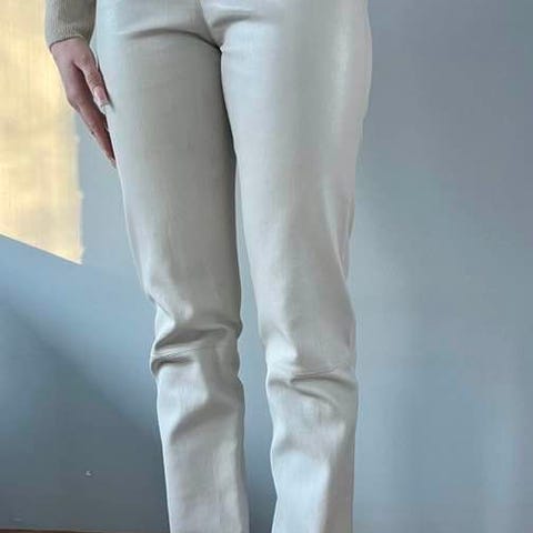 100 % lampaan nahkaa ohuet stretch nahkahousut, supermukavat päällä.