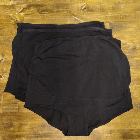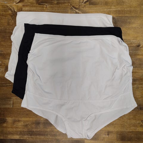 H&M naisten äitiyshousut, koko M x 4kpl. Materiaalina puuvilla. Tuote sisältää useamman värivaihtoehdon. Valkoiseen on tullut pesukoneessa tummia tahroja.