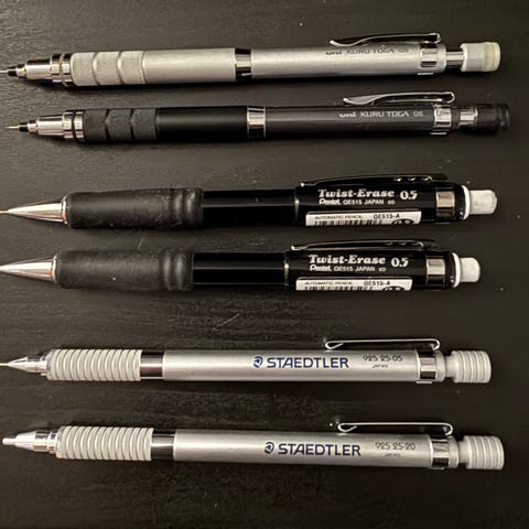 Pentel GraphGear 1000 lyijytäytekynä 0,5 mm, 4 kpl - setti