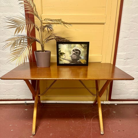 Teakkinen sohva-/ olohuoneenpöytä 60-luvulta.