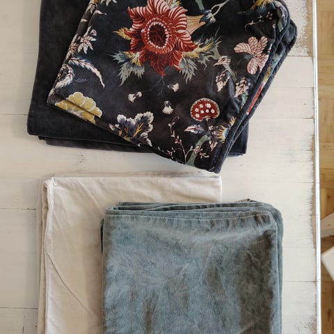 Hyväkuntoiset samettiset koristetyynynpäälliset, koko 50x50cm. Tummansininen ja tummanpunainen.