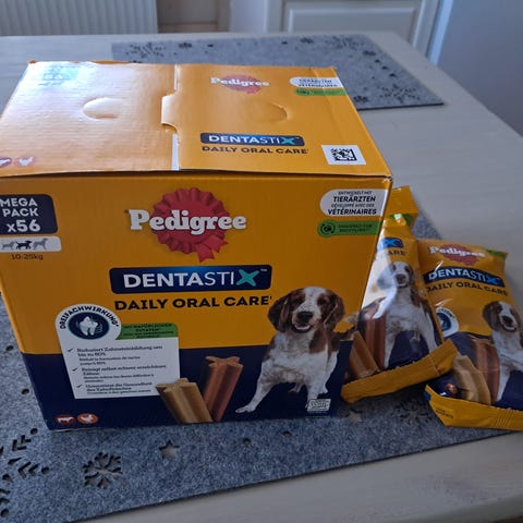 Pedigree DentaStix hammashoitoherkut, vähentää plakkia ja hammaskiveä. Avaamaton paketti ja yksi avaamaton pussi.