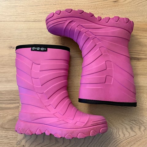 Myydään Nokian Light kids lasten pinkit kumisaappaat koossa 30. Sisämitta 20,5 cm. Erittäin kevyet, ei vuoria. Kestävät, keveät käyttää ja helppo pukea jalkaan. Pinnassa pieniä uurteita, ei vaikuta käyttöön.