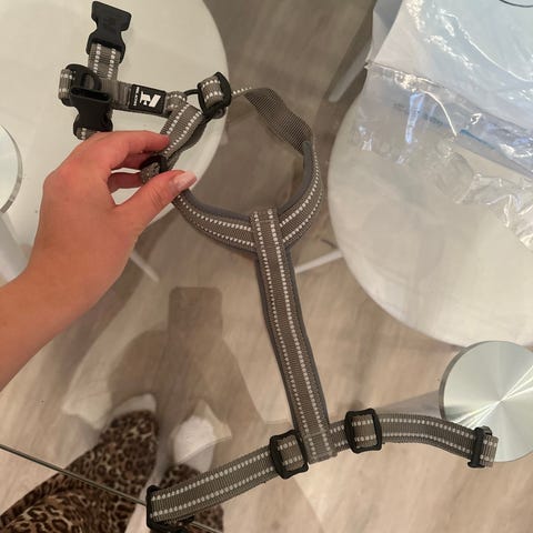 Siinä on kestävä ja turvallinen kahva selkäosassa koiran hallinnan helpottamiseksi.