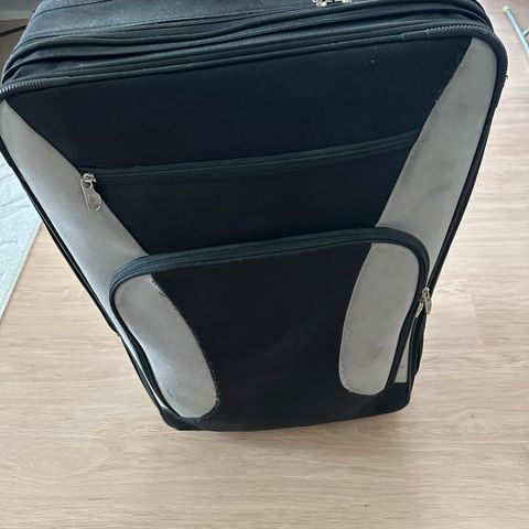 Matkalaukku, jossa USA lippu. Kova materiaali. 4 pyörää alla.