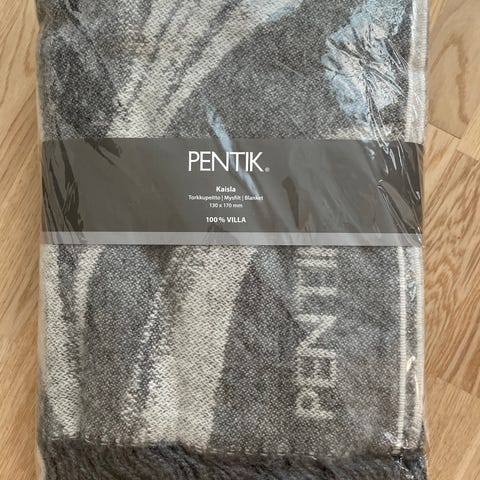 Pentik shaali tai peitto Aukusti. Suunnittelija Minna Niskakangas. koko 130 cm * 170 cm ilman hapsuja. 100% villaa.