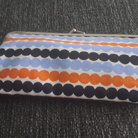 Myydään 100 prosenttisesta puuvillasta valmistettu kaunis Lumimarja-kuosinen Marimekko silmälasikukkaro. Metallisella kehyksellä varustettu tilava kukkaro on helppo napsauttaa auki ja kiinni tarjoten säilytystilaa erilaisille tavaroille rahoista kyniin, meikkeihin tai muihin tärkeisiin aarteisiin. Kukkaron leveys 19 cm ja korkeus 9 cm.