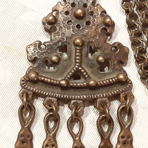 Ankkuriketju 70 cm, ei lukkoa. Riipuksen leveys 54 mm, korkeus riipuslenkkeineen 95 mm. Nurjalta puolelta kuvioimaton.