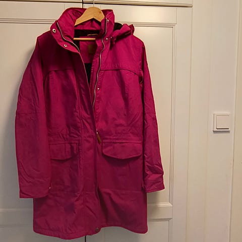 Torstai merkkinen ulkoilutakki, ehjä (kuvassa näkyy taskun suljin narun irtoaminen) ja siisti. Koiratalous. Noin mitat: kainalo-kainalo 60 cm, pituus 85 cm. Myynnissä myös muualla.