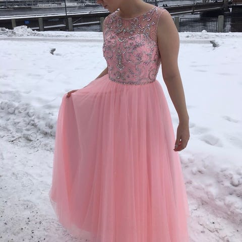 Myynnissä kerran käytetty vanhojentanssimekko. Koko xs. Olkaimeton ja korsetti, jonka saa kireälle niin pysyy hyvin päällä.