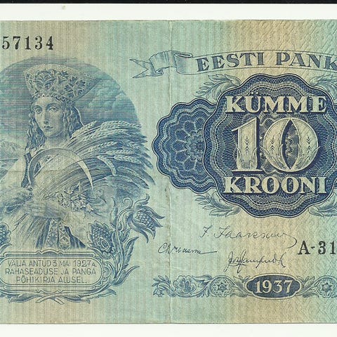 Eesti Seteli 100 Krooni 1994 No AZ-214639. Lievä pystytaitos hinta 8 e posti 2.50 e