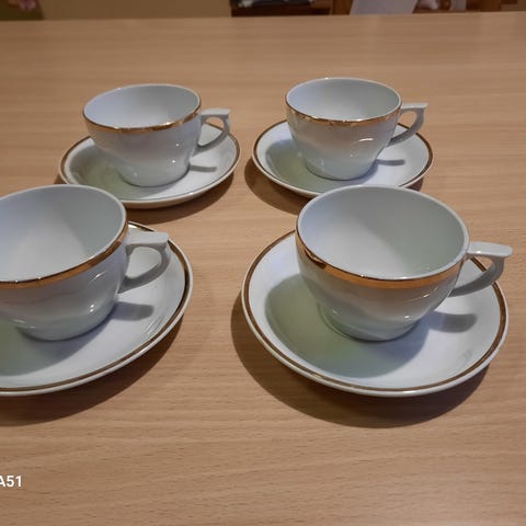 Arabian kahvikupit ja lautaset, ruskea väri. Astiastossa on kuusi (6) kahvikuppia ja niihin sopivat lautaset. Materiaali on keraaminen.