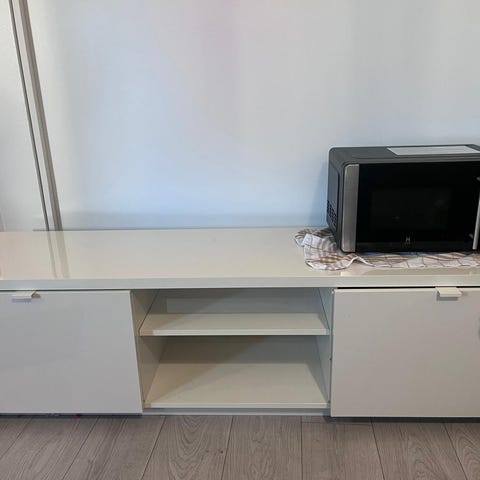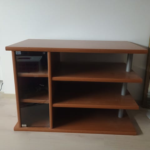 Annetaan peltinen Tv-taso. Toinen avain luukkuun katkennut.