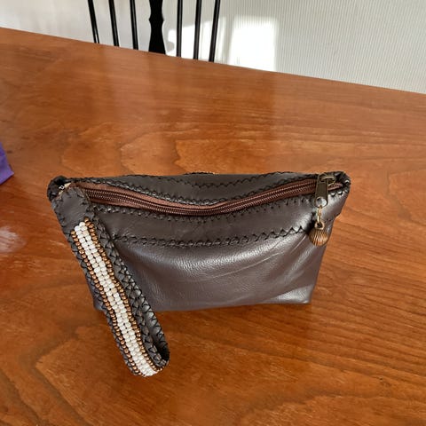 H&M clutch naisille, jossa on helmiäiskoristeiset simpukkakuviot. Laukun mitat ovat noin 16 cm leveys ja 6 cm syvyys. Sisältää ketjuhihnan. Väri on luonnonvaalea/beige.nähnyt Laukku on nähnyy monet juhlat ja ajan saatossa liimaukset aika ajoin värjäävät reunoja, mutta olen ruskeat kohdat saanut rapsutettua hyvin pois.