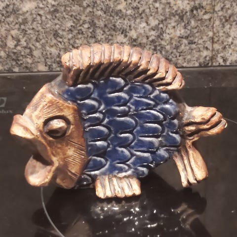 Hyväkuntoinen vanha keramiikka kala. Pituus 14 cm.
