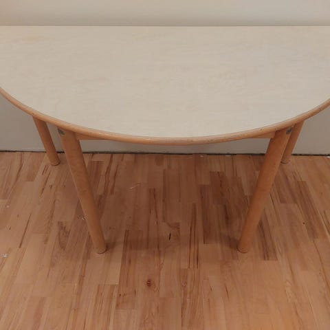 Puolipyöreä valkoinen lastenpöytä. Leveys 89cm, syvyys 45cm ja korkeus 50cm. Hintapyyntö 20€ / tarjoa. Nouto.