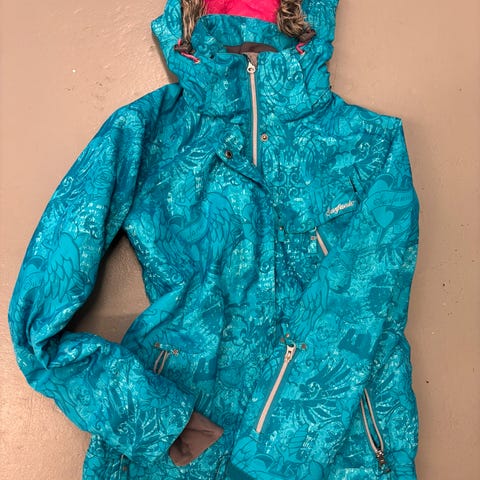 Myydään naisten laskettelutakki. Takki on muuten hyväkuntoinen, mutta kaulus on kulunut sisäpuolelta. Hihoissa myös muutama pieni tahra.