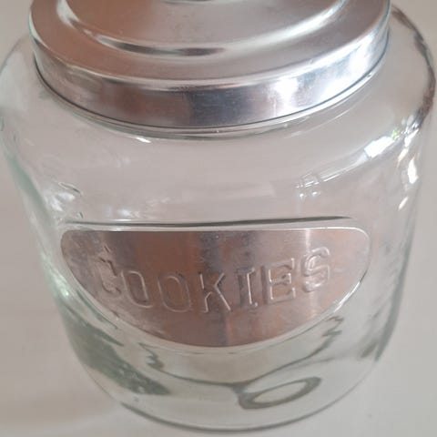 Kaunis Cookies lasipurkki kannella. Korkeus 25cm. Halkaisija 13cm.