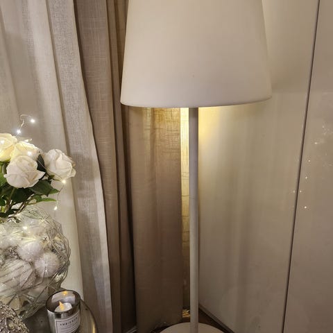 Jalka on paksu juuri kanto ja tähän on istutettu lamppu E27 kannalla ja noin 30cm valkoinen lasikupu. Jalan mitta suurimmillaan n.45-50cm. vain nouto, käteinen tai mobilepay.