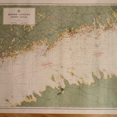 Vanha merikartta -70 luvun alusta. Tästä saisi hitokseen hienon taulun! (koko: noin 111x78cm)