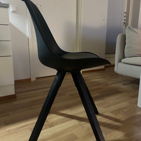 Myyn mustat ruokapöydän tuolit 4 kpl. Ehjät hyvässä kunnossa. Nahkaiset mustat. Muutomia tahroja saattaa olla mutta pitäisi lähteä pois pyyhkimällä.