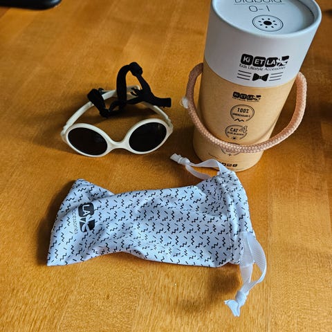 Myydään Kietla merkkiset aurinkolasit nallekorvilla, vaaleankeltaiset. Sopii noin 1-2 vuotiaille, mukana myös irrotettava kuminauha ja kotelo.