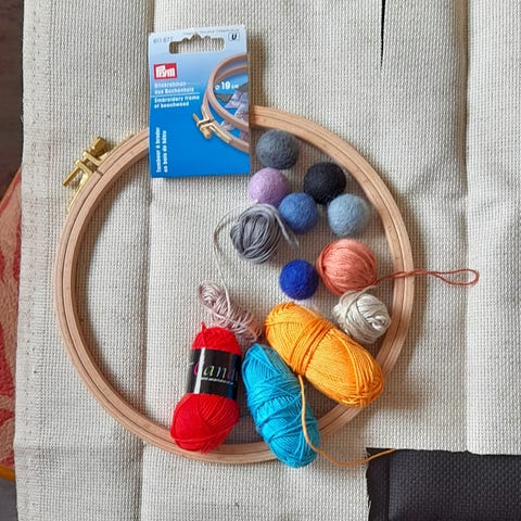Kauniit Talitiaiset kirjontakäsityö. Painettu linnut kankaalle ja langat ym. mukana.