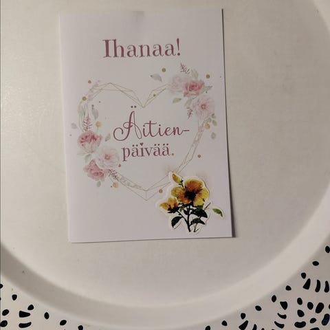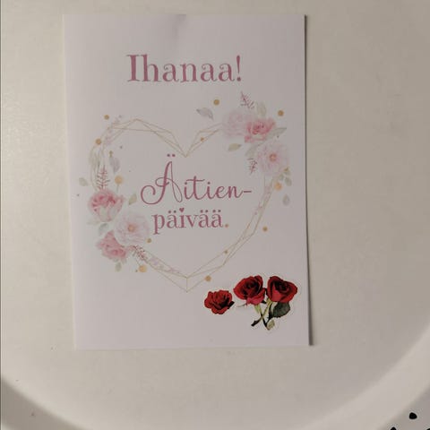 Kaksi Muumimamma korttia ja kolme äitienpäivä korttia vielä muoveissaan. Hinta 2 € / kpl. Puhtaat kortit kaikki kerralla 10 €. Tulee kirje maksulla, joka lisätään summaan.