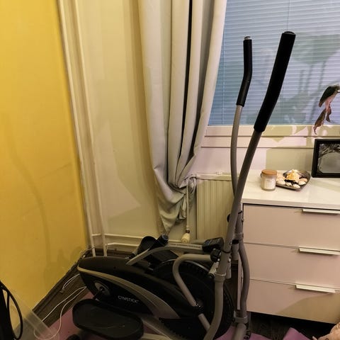 Crosstrainer kuntolaite, kahvoista löytyy nuo tunnistuskohdat joka sitten mittaa erinäisiä suoritusarvoja. Mielellään kasattuna nouto mutta mikäli kuljetuskalustoa ei löydy niin onnistuu laittaa esimerkiksi kahteen osaan kyseinen laite niin mahtuu henkilöautoon mutta vain nouto.