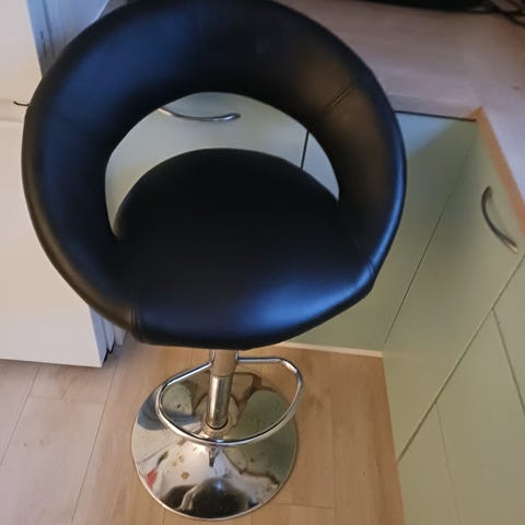 Jyskin baarijakkara. Korkeus 105 cm, leveys 43 cm, syvyys 45 cm. Nahka osa ehjä, ei kulumaa tai muuta käytönjälkiä.