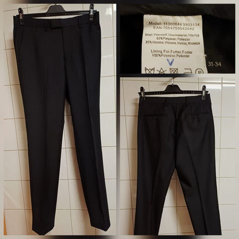 Mustat suorat housut / puvun housut 34/30 , 45% villaa