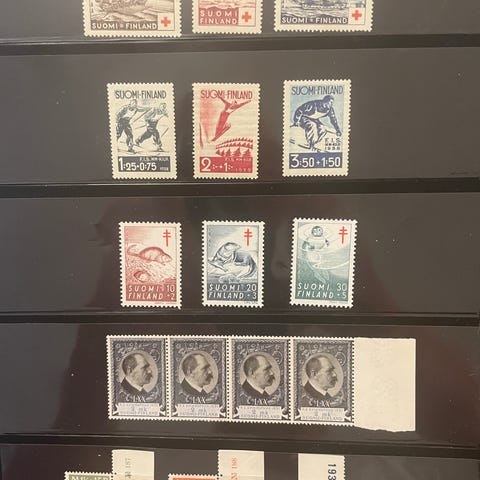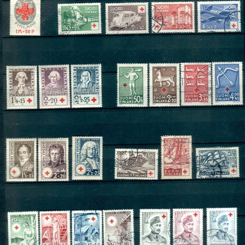 Suomi Punainen Risti postimerkit, kolme erilaista arkkia, eri arvoilla: 50, 2,20 ja 3,35. Postimerkit ovat perinteisiä keräilykohteita.