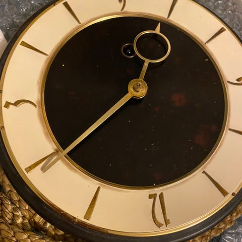 Vanha 1900-luvun alusta. Etu puoli siisti, takana kulumaa ja halkeamia. Kello toimii. Muista mekanismistä ei varmuutta. Vain nouto.