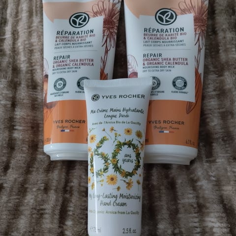 Yvrs Rocher tuotepaketti, kaikki uusia. Tilattu Ranskasta pari kuukautta sitten. Käsi/vartalosaippua (ovh. 15,90 e) ja kaksi käsirasvaa (ovh. 23,90 e).