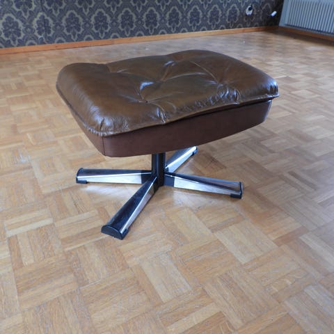 Tumman ruskea nahkainen rahi/palli/jakkara/ottomaani. Retro vintage.