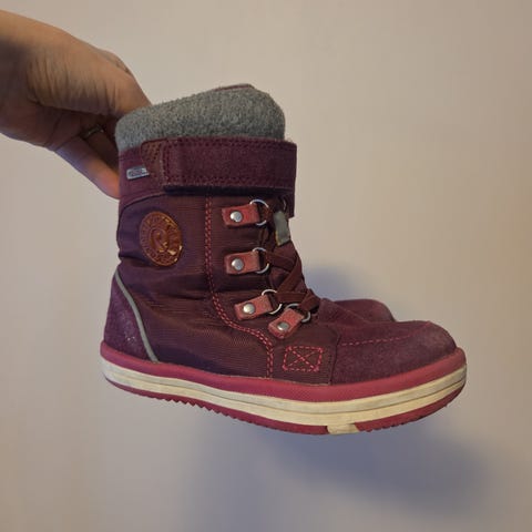 Reima talvikengät koko 29. Valmistajan ilmoittama sisämitta 19,2cm. Ollut käytössä samaan aikaan muiden 29 ja 30 koon kenkien kanssa. Käytetyt mutta perussiistit, kärjissä vähän tummumaa. Vuori sisältä ehjä.
