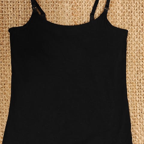 Imetystoppi, jossa on avattavat kupit. Toppien olkaimissa on kiinnikkeet ja rinnan alapuolella joustava vuoriosa, jotta imetys olisi mahdollisimman helppoa.