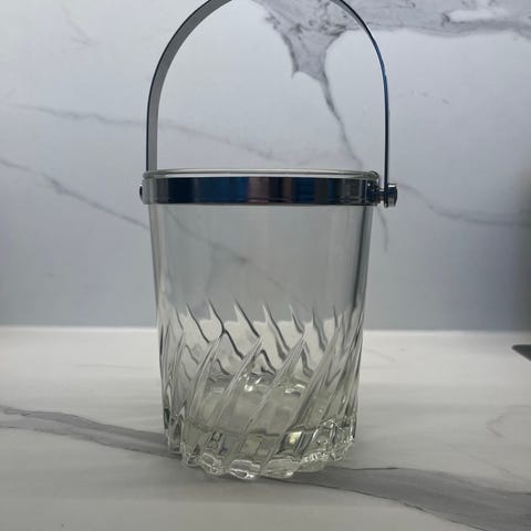 Egyptistä tuotu tukeva maljakko sinistä lasia, jossa on kullan väriset koristeraidat. Korkeus 21,5 cm. Nouto sopii hyvin.
