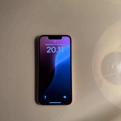 Sininen Apple iPhone 13 Mini -älypuhelin, jossa on 128 Gt tallennustilaa. Mukaan tulee puhelimen lisäksi alkuperäinen pakkaus ja latauskaapeli. Akun kunto on 86 % ja se on alkuperäinen.